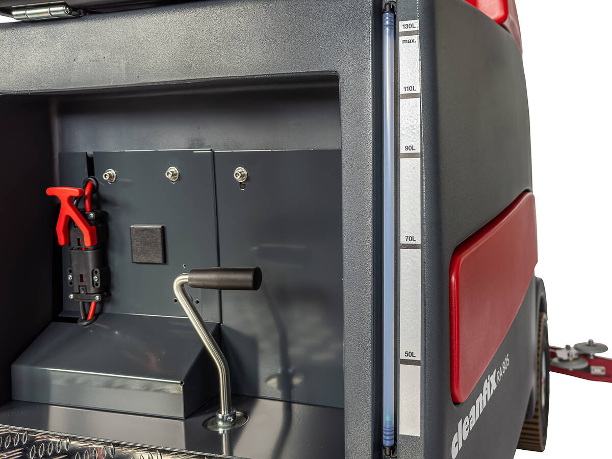Onze RA905 toont zijn kracht waar we wendbaarheid en snelheid vragen. De machine is comfortabel laag om op te stappen. De constructie is zeer stabiel en robuust. Veiligheid is gegarandeerd dankzij de voorwielen en een aandrijving achteraan. Een watercapaciteit van 130 l biedt de juiste hoeveelheid water voor de uit te voeren reinigingstaak.